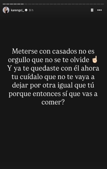 - Karen Caro responde con advertencia en redes.
