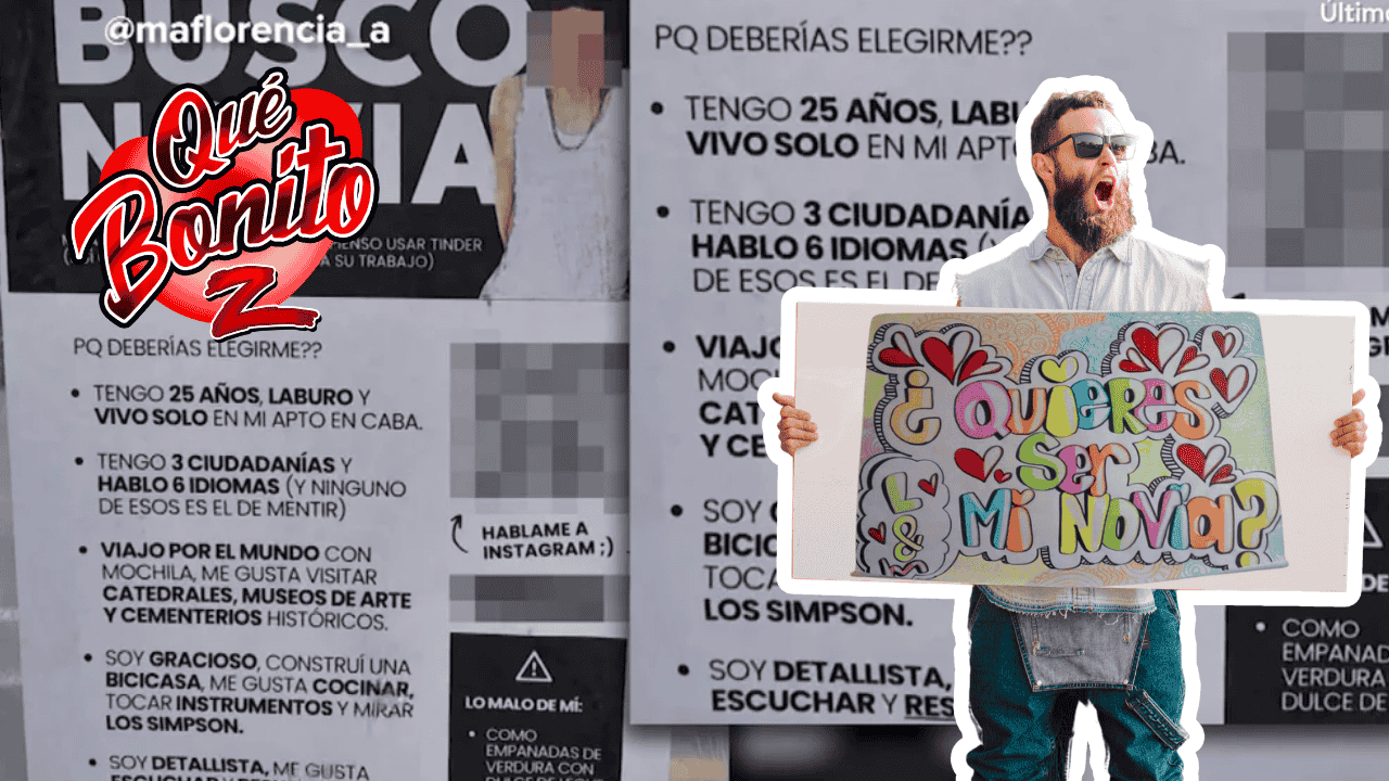 El chico de los carteles, dijo basta de las apps y decidió buscar novia a la antigua. Pegó afiches por todo Belgrano donde cuenta que vive solo, habla varios idiomas y hasta construye casas para bicicletas. ¡Todo un personaje!